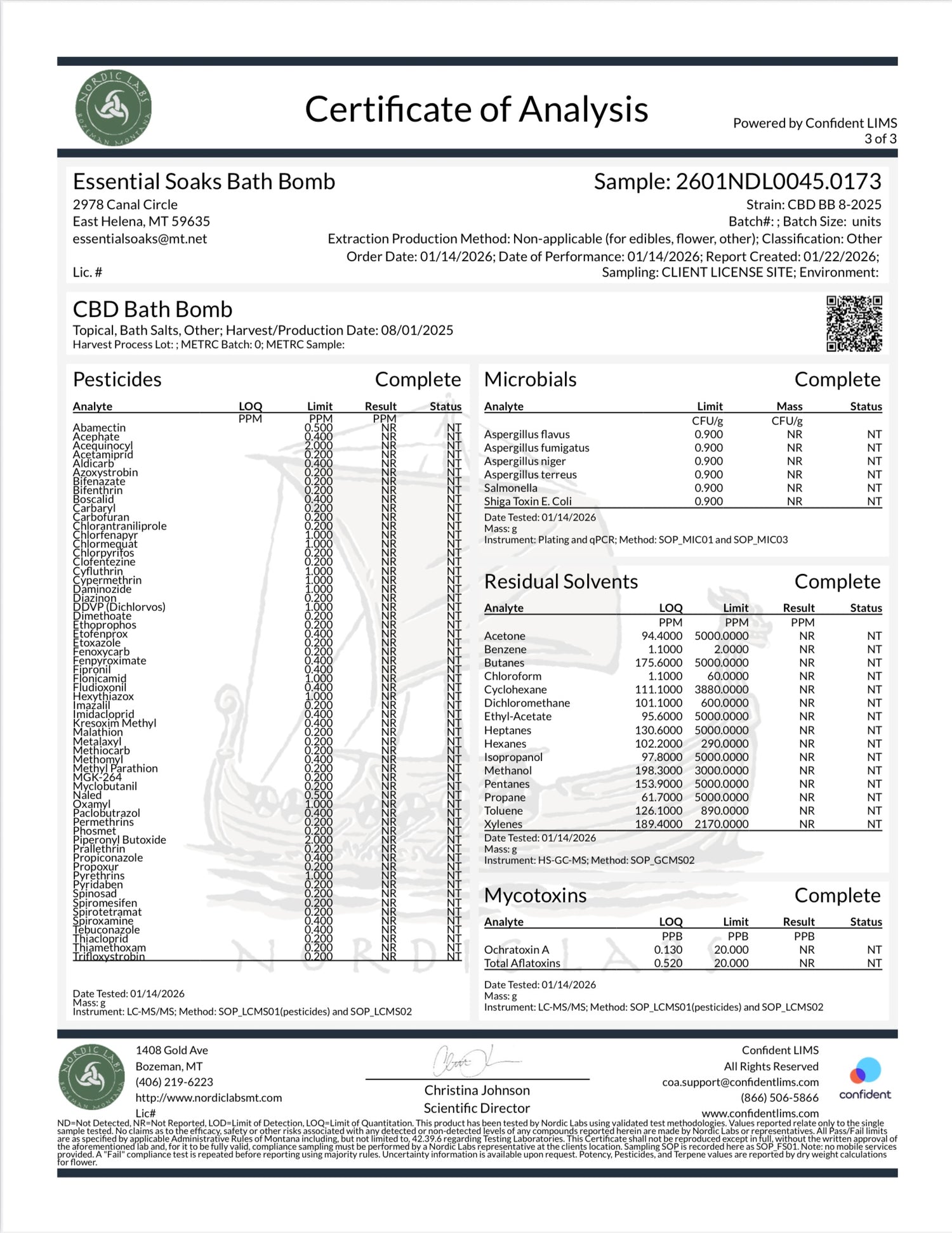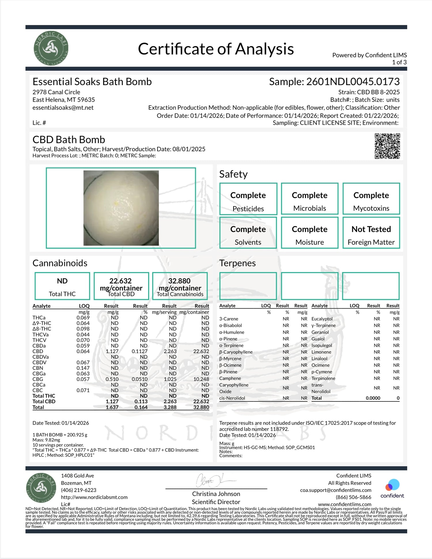 - The Mama Bear chair, that is just right, is the Broad-Spectrum. Although Broad-Spectrums may contain a very tiny amount of THC, it is typically removed. The oil that we are using is tested and reported as non-detectable. It also contains all the Cannabinoids, Terpenes, and Flavonoids that are reported to have great health benefits. Does it have a taste? You won't know......unless you eat a Bath Bomb (don’t do it). The aroma is so slight, it doesn't interfere with the Pure Essential Oils that we add for aroma, energy, relaxation, and other benefits.